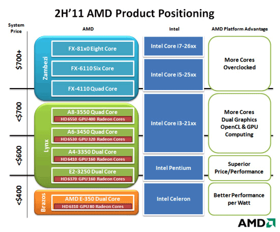 Вот табличка, составленная сотрудниками X-Bit Laboratories, в которой расписаны известные характеристики новых процессоров AMD, что должны составить конкуренцию Sandy Bridge: