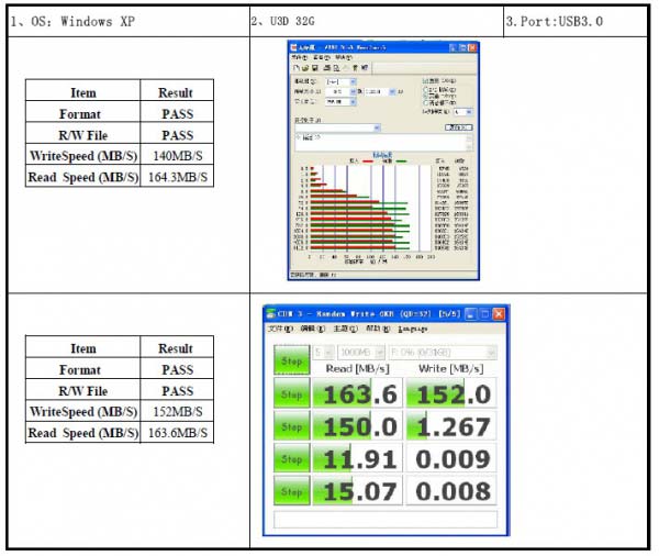 Хотя тут стоит уточнить, что новинка существует в 8, 16, 32 и 64ГБ исполнении и скорости записи/чтения у всех них довольно-таки разные (минимум - 125/100МБ/с, максимум - 165 и 152МБ/с). Чтобы мы не сомневались в заявленных показателях, производитель выдал результаты тестов этих флешек в некоторых бенчмарках (соответствующие скриншоты Вы найдёте ниже, после фотографий).