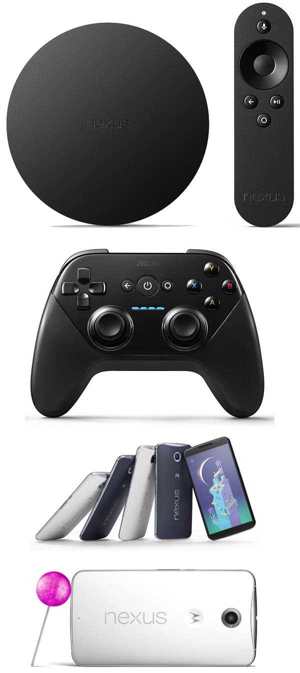 Первая - управляемый Android 5.0 мини-ПК/медиаплеер Nexus Player, сделанный в сотрудничестве с ASUS. Новинка имеет в основе четырёхъядерную SoC Intel Atom (1.8ГГц), поддерживает 802.11ac WiFi и Google Cast, имеет видеовыход HDMI. К аппарату можно подключить геймпад, дабы гонять написанные под Android игры, но данный манипулятор приобретается отдельно. За Nexus Player просят 99 долларов США, за геймпад - $39, с 3 ноября девайсы появятся в магазинах. Небольшое видео, показывающее агрегат в деле:
