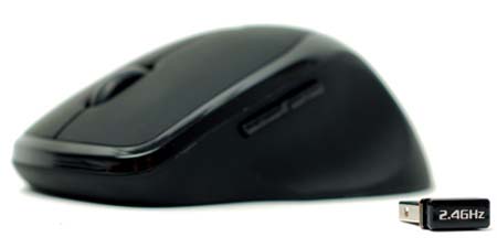У "грызуна" пять кнопок (интересно - все они сделаны тихими?), работает новинка на беспроводной технологии 2.4ГГц, соединение с ПК идёт по так называемому Nano-ресиверу, подключаемому в USB порт (этот ресивер хорошо виден на самой нижней фотографии из трёх доступных). Пока что, новинка будет выпускаться в чёрном цветовом исполнении, хотя помня историю с предыдущей моделью, можно предположить, что в обозримом будущем появится и белый вариант "грызуна". Работает мышка от двух АAА батареек, а чтобы аккумуляторы не сели раньше времени, предусмотрен режим сохранения энергии (Auto Power). Кстати - сенсор у мыши оптический, но вот его разрешение пока остаётся тайной.