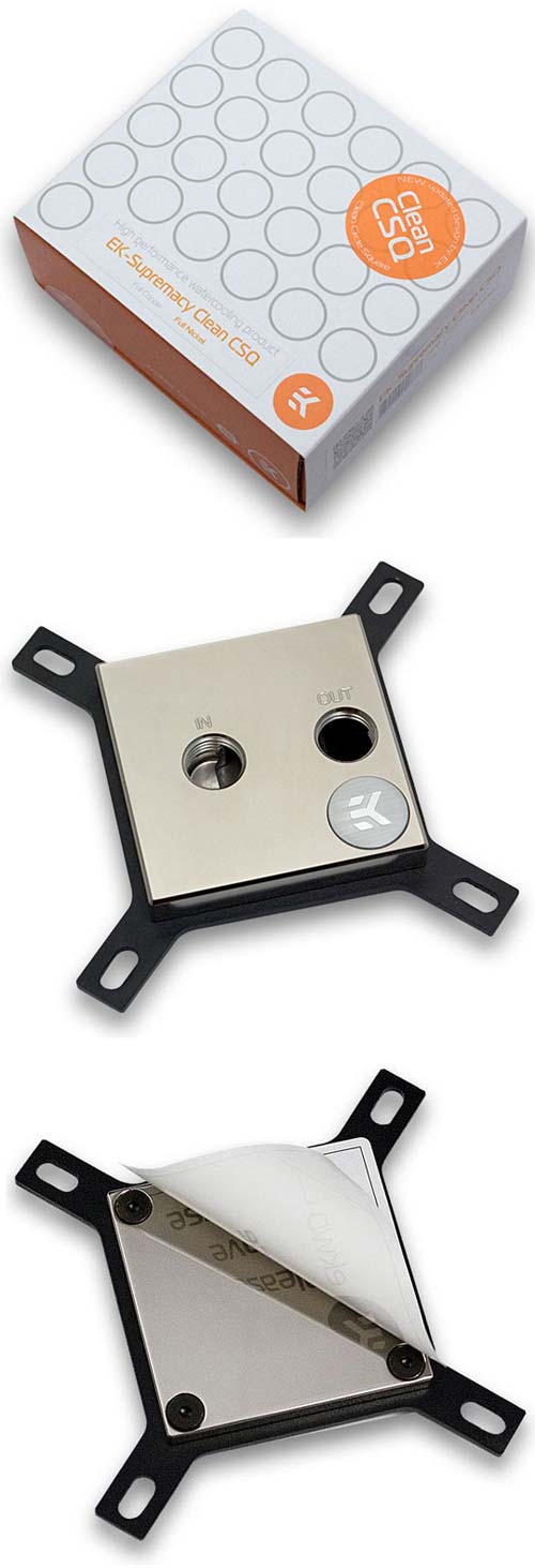 Новые водоблоки серии EK-Supremacy Clean CSQ порадуют владельцев своей эффективностью, изделия совместимы со всеми современные процессорными сокетами и снабжены универсальным крепёжным механизмом, который предотвращает саму возможность некорректной установки, снижая тем самым повреждение изделия или же процессора/материнской платы. Установка водоблока производится без использования инструментов.