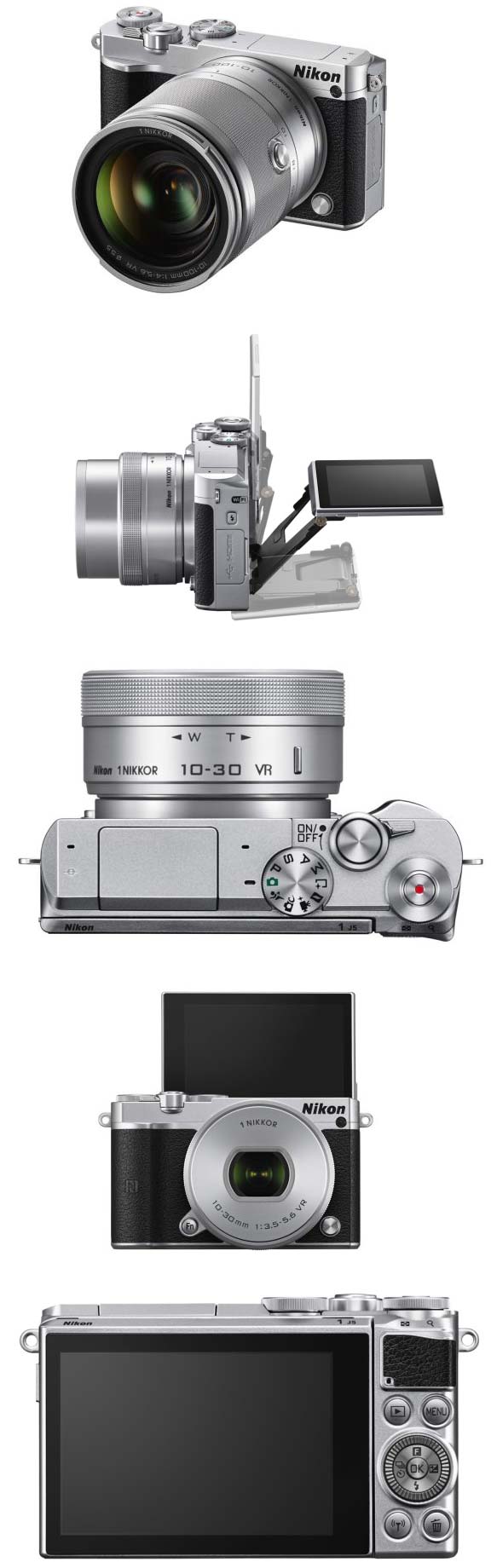 Аппарат Nikon 1 J5 получил 20.8МП VFI CMOS сенсор, процессор обработки изображения XP5A, а также 3" ЖК экран, идеально подходящий для съёмки селфи. Показатель ISO - 1600 - 12800, есть поддержка NFC и WiFi, видео пишется в 4K при 15FPS, в 1080p при 60 и 30 FPS, а также в 720P при 120 FPS. В режиме непрерывной съёмки аппарат показывает до 20FPS с автоматической фокусировкой и до 30 и 60 с фиксированным фокусом.