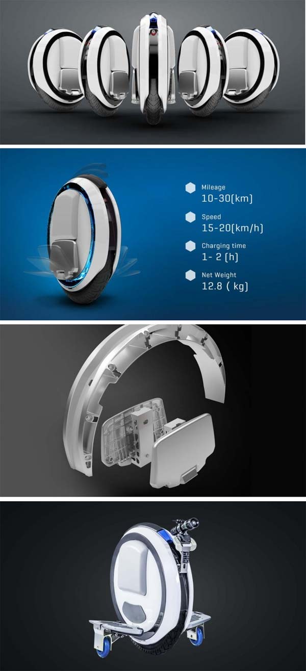 Устройство именуется Ninebot One и является самобалансирующимся моноциклом. Достаточно зарядить батарею устройства, встать на него обеими ногами и начать движение. Колесо у девайса одно, благодаря встроенным сенсорам, аппарат не перевернётся вместе с ездоком, т.е. перемещение таким способом можно назвать относительно безопасным, это не тоже самое, что ездить на одноколёсном велосипеде, постоянно балансируя, как это делали в далёкие годы лихие циркачи.