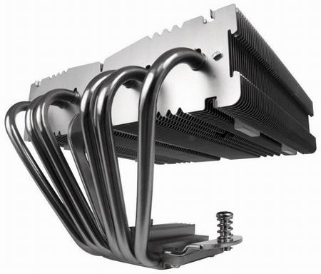 Особенностью данной системы охлаждения можно считать то, что её можно использовать как в пассивном варианте (без вентиляторов), так и в активном. Т.е. новинке будут рады и обладатели тихоходных процессоров в небольших корпусах (там кулер можно будет использовать с одним вентилятором или вовсе без "вертушек") и оверклокеры (которые "карлсонов" навесят по-максимуму).