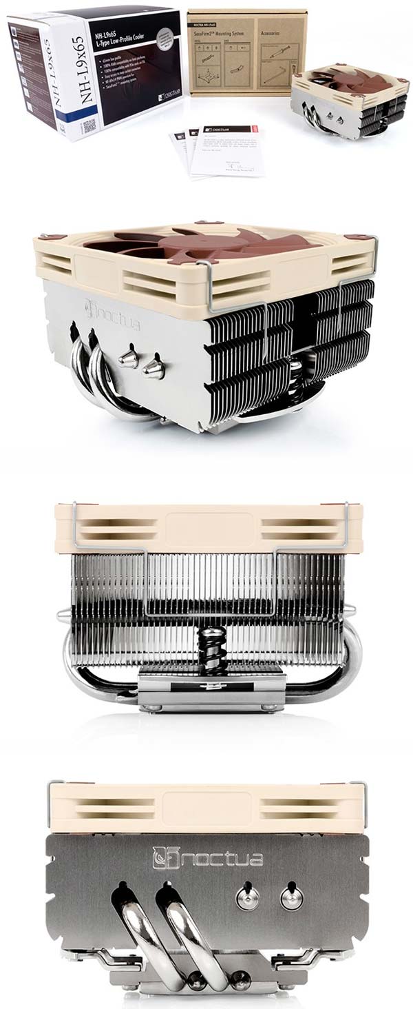 Название агрегата - NH-L9x65, этот кулер имеет высоту 65мм, ширину и глубину 95мм, вес 413 граммов. Агрегат способен охладить процессоры Intel LGA2011-0 & LGA2011-3 (Square ILM), LGA1156, LGA1155, LGA1150 и AMD AM2, AM2+, AM3, AM3+, FM1, FM2, FM2+ (нужен бэкплейт).