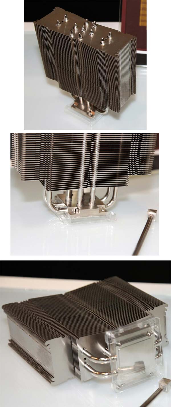 Следующий кулер выделяется так называемыми Cube-base теплотрубками, которые должны повысить эффективность изделия без прибегания к помощи испарительной камеры в составе кулера, это позволит сделать систему охлаждения дешевле. Технология таких теплотрубок показана на примере кулера NH-U14S, который был должным образом модифицирован:
