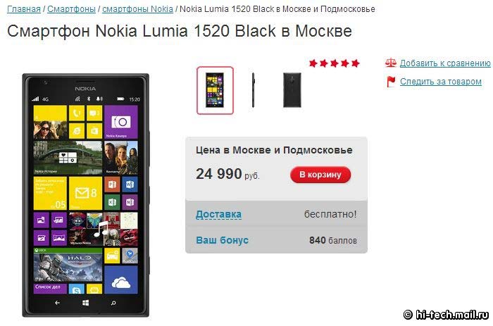 Цена снижена официально, Nokia Lumia 1520 теперь стала немного доступнее