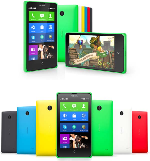 Первое изделие называется Nokia X (старое название - Normandy), этот аппарат имеет 4" сенсорный экран с разрешением 800x480, основой бюджетного аппарата стала двухъядерная 1ГГц SoC Qualcomm Snapdragon S4 Play, объём оперативной памяти равен 512МБ, а вот сколько флеш памяти - не указано, но есть данные о наличии слота для карточек microSD/SDHC.