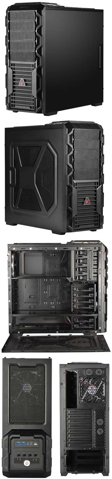 Шасси X2.6019 создано из оцинкованной стали (SECC), толщина которой 0.6мм, предназначено оно для материнских плат ATX и mATX (а возможно и ещё для каких-то). У новинки четыре 5.25" отсека и шесть мест для 3.5" накопителей. Корзина для винчестеров снимается, давая возможность установить видеокарту совершенно нелепой длины (450мм).