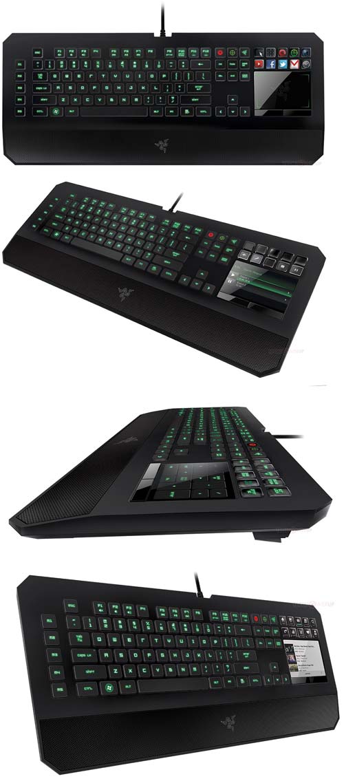 Как и у продукта "Безумных кошек", у клавиатуры DeathStalker Ultimate имеется ЖК тачпад, его диагональ составляет 4.05". Есть у изделия и трекпад с поддержкой жестов, трёхцветная подсветка, 10 клавиш с дисплеями с временем отклика в 80Гц. Одно радует - клавиатура не модульная, как S.T.R.I.K.E.7... хотя кому-то это покажется недостатком.