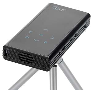 Аппарат называется HD Man, в первую очередь это мини проектор на базе DLP технологии. Аппарат проецирует картинку с разрешением 854x480, яркость - 120 люмен, контрастность - 1000 к 1, диагональ - от 10 до 100 дюймов, расстояние - от 300 сантиметров до 4 метров. Время жизни устройства - 30000 часов, используется RGB LED лампа. В аппарат встроена пара 2-ваттных динамиков, имеются порты AV, Micro USB и USB 2.0, слот для карточек microSD и видеовыход HDMI.