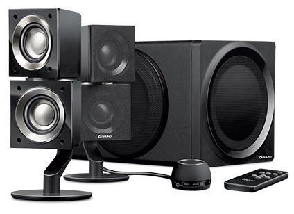 Данный 2.1 набор предназначен как для домашних ПК, так и для портативных компьютеров всех мастей, потому как подключается он по Bluetooth 2.1. Характеристики комплекта не названы. Сабвуфер состоит из трёх динамиков и называется SLAM (группа Onyx тут не причём, уверяю). В добавок к двум колонкам и сабу, покупатель получит пульт Д/У и некое устройство для всестороннего контроля над звуком.