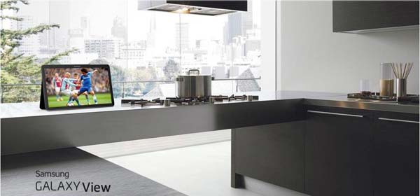 Аппарат Galaxy View может сойти за небольшой телевизор, т.к. диагональ его экрана составляет 18.4", разрешение - 1920x1080. Основой решения стала 1.6ГГц 8-ядерная SoC Exynos 7580 с графикой Mali-T720, объём оперативной памяти равен 2 гигабайтам, места для файлов владельца выделено 32 гигабайта, его можно расширить на 128ГБ с помощью microSDXC носителя.