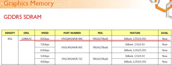 Новые микросхемы SK Hynix GDDR5 предназначены для работы на высокой частоте в 8 ГГц, предназначены для видеокарт. Пока микросхемы такого типа могут работать лишь на частоте в 7 ГГц. Если немного порыться в интернете, то совсем не сложно обнаружить сайт производителя, где можно почитать технические характеристики новых микросхем, и различных их вариаций.