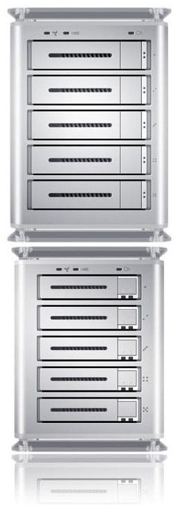 Каждая из новинок поддерживает до 5 винчестеров одновременно, в чём же между устройствами разница? Дело в том, что TowerSTOR TS5CT работает с 3.5" накопителями, а модель TS25CT - только с 2.5". В остальном продукты Sans Digital схожи - они обеспечивают возможность создания РЭЙД-массивов типа 0, 1, 3, 5, 10 и JBOD. Подключение к ПК осуществляется по USB 2.0, eSATA и даже Firewire 800.