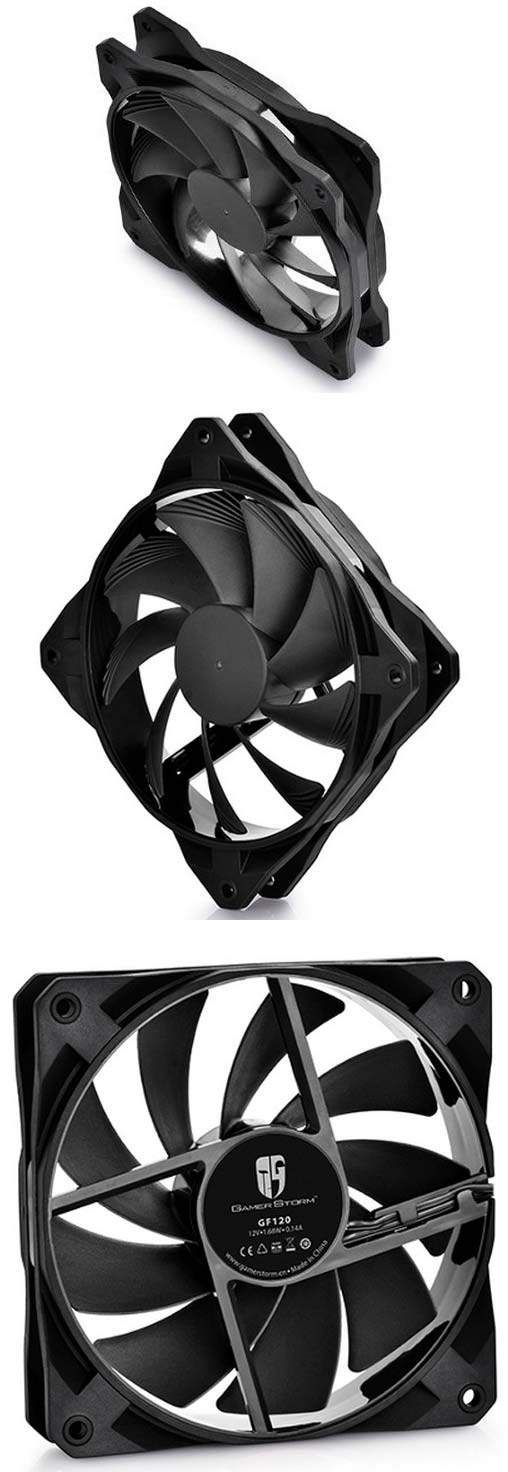 Устройство именуется GF120, его размеры составляют 120x120x25мм, вес равен 170 граммам. Вентилятор имеет ШИМ/PWM управление, скорость вращения его лопастей составляет 500±200~1800±10% об/мин, создаваемый новинкой в работе воздушный поток имеет силу в 79.81 кубических футов в минуту, уровень шума начинается от 17.6 и заканчивается 32.5 дБ. Энергопотребление "карлсона" - 1.68 ватт, стартовое напряжение - 7 вольт, рабочее - от 10.8 до 13.2 вольт.