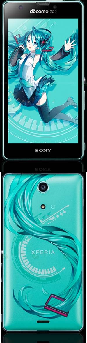 Особый вариант смартфона посвящён героине одной из популярных на Sony PSP (и некоторым образом на Playstation 3) rhytm-игр, Hatsune Miku: Project DIVA. В основе изделия лежит четырёхъядерное решение APQ8064 (1.5ГГц), объём оперативной памяти не указан, внутренней - тоже, хотя вряд ли имеются различия с эталонным смартфоном Xperia A.