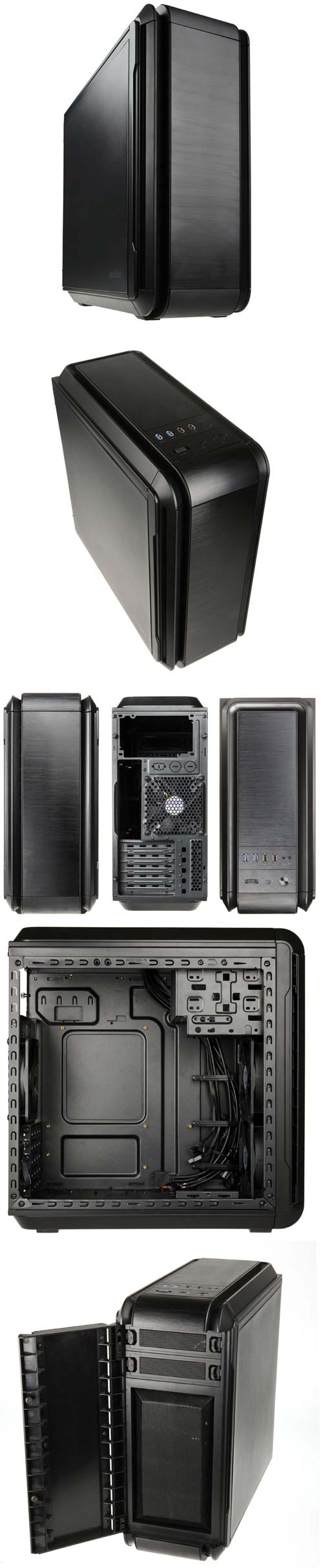 Anidees AI-4 обладает двумя внешними 5.25" отсеками, а также четырьмя установочными местами для 3.5/2.5" накопителей. Корпус совместим с блоками питания ATX, количество слотов расширения равно пяти, на панели ввода/вывода находятся два порта USB 3.0 и такое же количество USB 2.0, не обошлось и без аудио коннекторов. Производитель сообщил, что в данный корпус влезет видеокарта длиной 318мм, а также процессорный кулер высотой 168мм. Не поленились в Anidees предоставить данные о месте для укладки кабелей за лотком для системной платы, его там 175мм.
