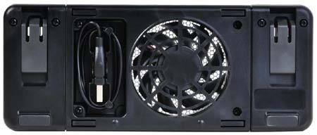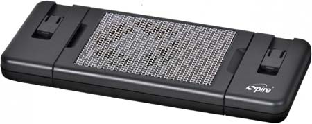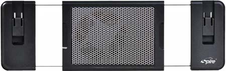 Габариты этой системы охлаждения: 220х90х22мм, вес - 245 граммов. Как и все подобные устройства, Juno кладётся под лэптоп, охлаждая его с помощью потока холодного воздуха, идущего от своего 70мм вентилятора, что находится за металлической сеткой. И на своей вершине, если можно так выразиться и на основании, кулер имеет прокладки, препятствующие скольжению ноутбука на Juno и Juno на коленях пользователя. Подключение устройства осуществляется к USB порту лэптопа, продукт Spire совместим с ноутбуками с диагональю экрана от 7 до 15.4 дюймов.