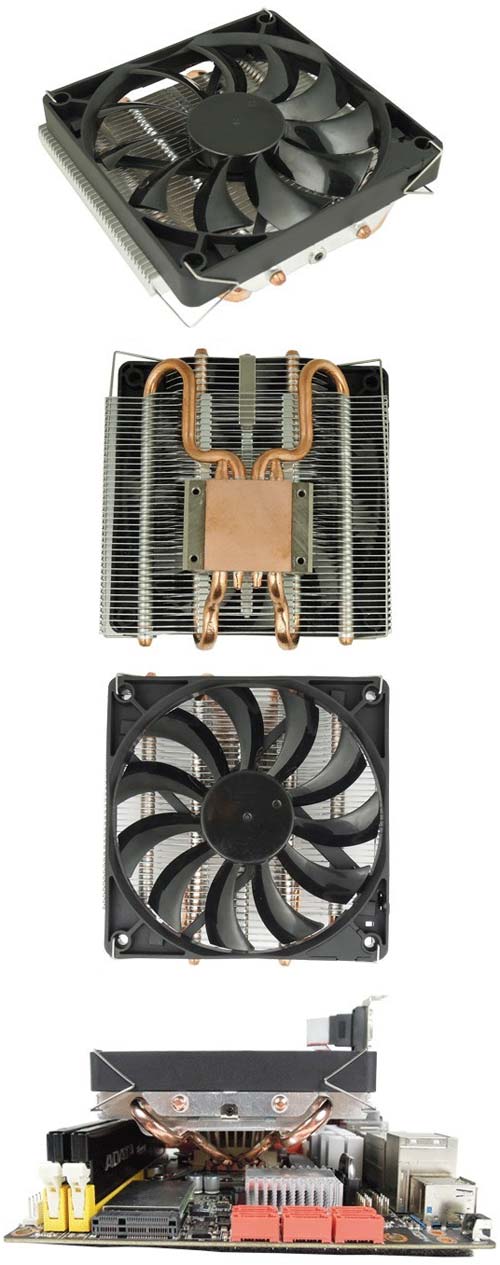 Изделие GELID совместимо с процессорами Intel 775/ 1155/ 1156/ 1366 (LGA 1155) и AMD AM2/ AM2+/AM3/AM3+/ FM1/ FM2, в его конструкции имеются четыре теплотрубки и алюминиевые пластины, из которых состоит радиатор. Охлаждать всё это дело поручено тонкому 120мм вентилятору, который по заверениям компании-производителя, должен работать очень тихо.