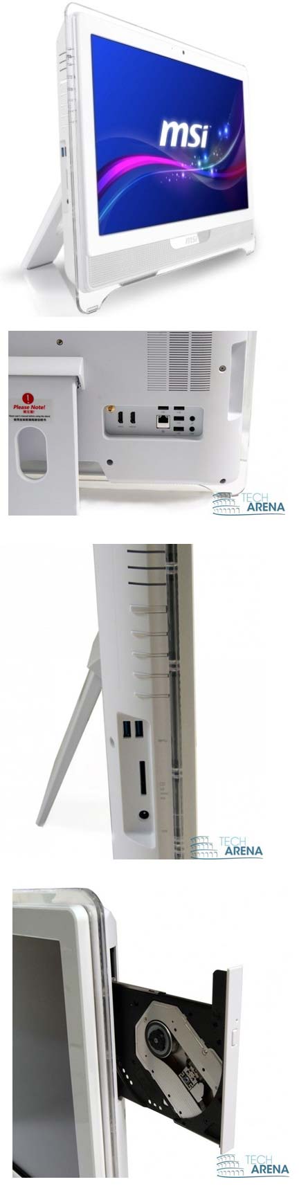 Из портов можно отметить два USB 3.0, четыре USB 2.0, микрофонный вход и выход на наушники. Есть также и HDMI вход и выход, встроен гибридный ТВ-тюнер, есть 1.3МП веб-камера с микрофоном. Новинка поддерживает крепление по стандарту VESA к стене. Габариты продукта MSI: 555.1х404.98х66.46мм, а вес равен 9.1КГ. В комплекте с устройством идут клавиатура и мышка, беспроводные. Энергопотребление девайса составляет 150 ватт.