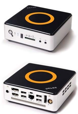 Нет - девайсы от Zotac не пригласят к Вам подруг или друзей, они лишь смогут предоставить возможность насладиться любимым фильмом или же не самой новой игрой. Представлено два устройства на базе процессора VIA Nano X2 U4025 (1.2ГГц) - баребон ZBox nano VD01, что можно оснастить своим 2.5" накопителем и оперативной памятью класса DDR3-1066, плюс его братец ZBox nano VD01 Plus, в который 320ГБ винчестер и 2ГБ оперативной памяти уже установлены, конечно же, не бесплатно.