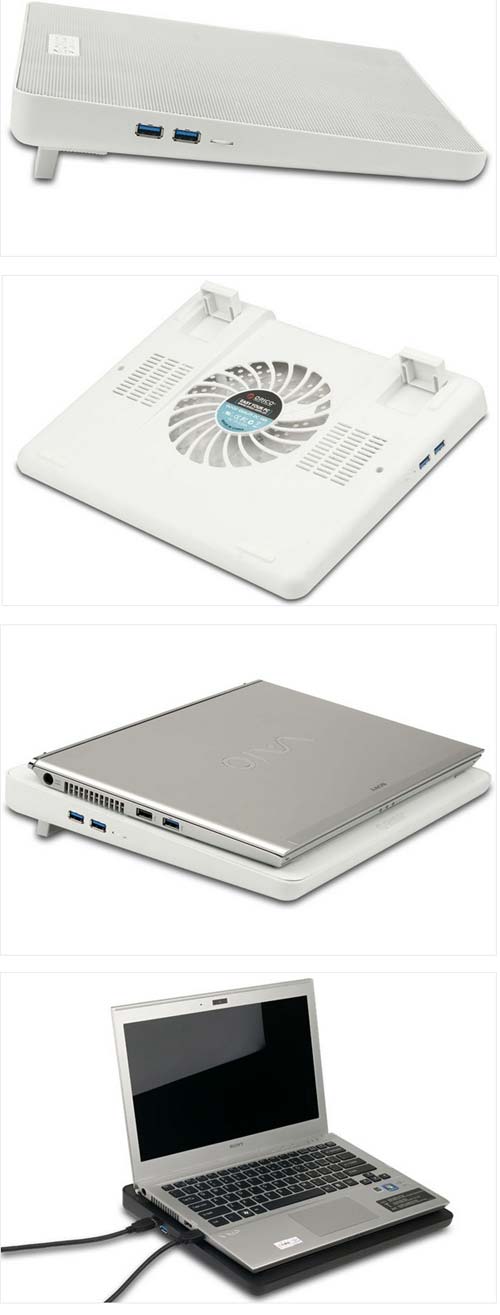 Вышеназванным недостатком является наличие всего одного порта USB 3.0 у портативного компьютера. Новые подставки-кулеры NCP-1521U3 и NCP-1522U3 обладают парой портов USB 3.0, что явно не будет лишним в арсенале обделённых этими (и некоторыми другими) портами владельцев ноутбуков и прочей мобильной техники такого плана.