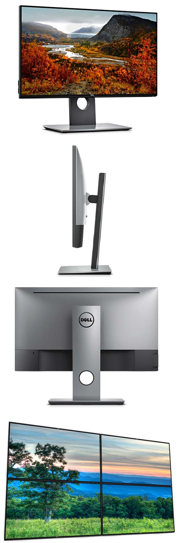 Аппарат именуется UltraSharp 27 InfinityEdge (модель U2717D), это 27" агрегат на базе IPS панели/матрицы с белой светодиодной подсветкой (W-LED). Разрешение экрана составляет 2560x1440, частота обновления экрана ограничена 60Гц, показатель статической контрастности равен 1000 к 1, углы обзора - 178° градусов, яркость - 350 кандел на квадратный метр, решение способно отображать 16.7 миллионов цветов, имеет время отклика в 8мс (g2g) в обычном режиме и 6мс в режиме Fast.