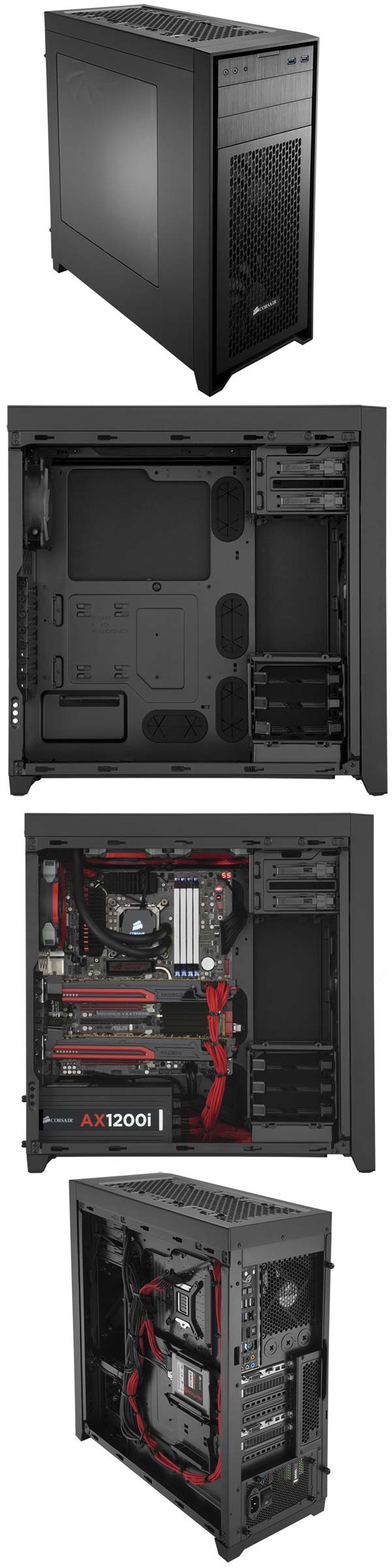 Аппарат получил имя Obsidian 450D, устройство имеет размеры 494x210x497мм, весит 7 килограммов. У него два 5.25" отсека, три места для 3.5/2.5" накопителей, а также ещё два для 2.5" SSD позади поддона системной платы. Количество слотов расширения равно семи, вентиляторов в корпус можно установить до восьми штук.
