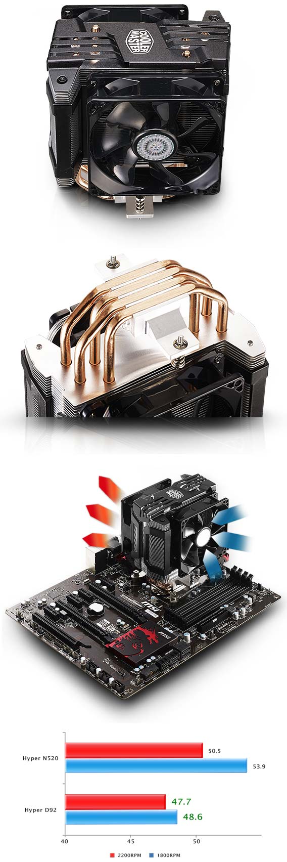 Ровно как и в предыдущем материале, сведения о кулере я публикую в виде таблички. Вот что представляет собой Hyper D92: