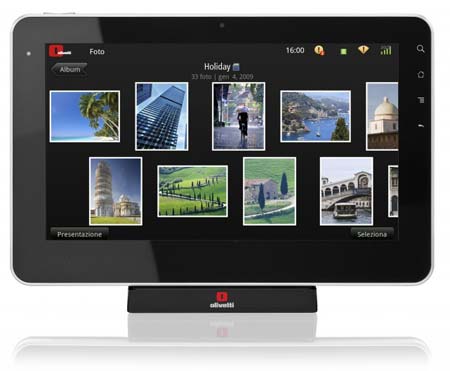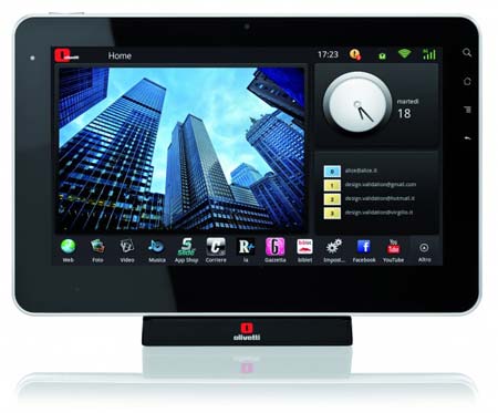 Новый планшетник имеет диагональ сенсорного экрана 10 дюймов, разрешение - 1024х600, внутри устройства трудится NVIDIA Tegra 2 (два ядра ARM Cortex A9@1ГГц), а оперативной памяти у девайса 1ГБ (тип памяти - DDR2). Также новинка оснащена 1.3МП камерой, G-сенсором, светосенсором и парочкой 1 ваттных динамиков, плюс имеются USB 2.0 и mini-USB порты.Толщина корпуса продукта Olivetti - 13.9мм.