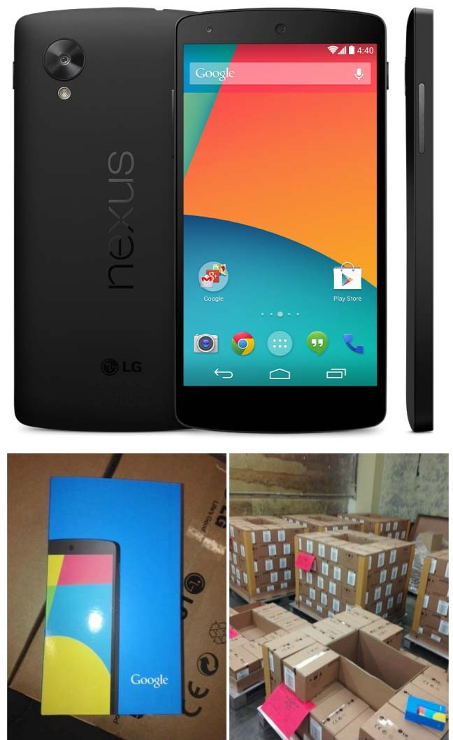 Фото смартфона Google/LG Nexus 5 и склада, буквально забитого этими аппаратами