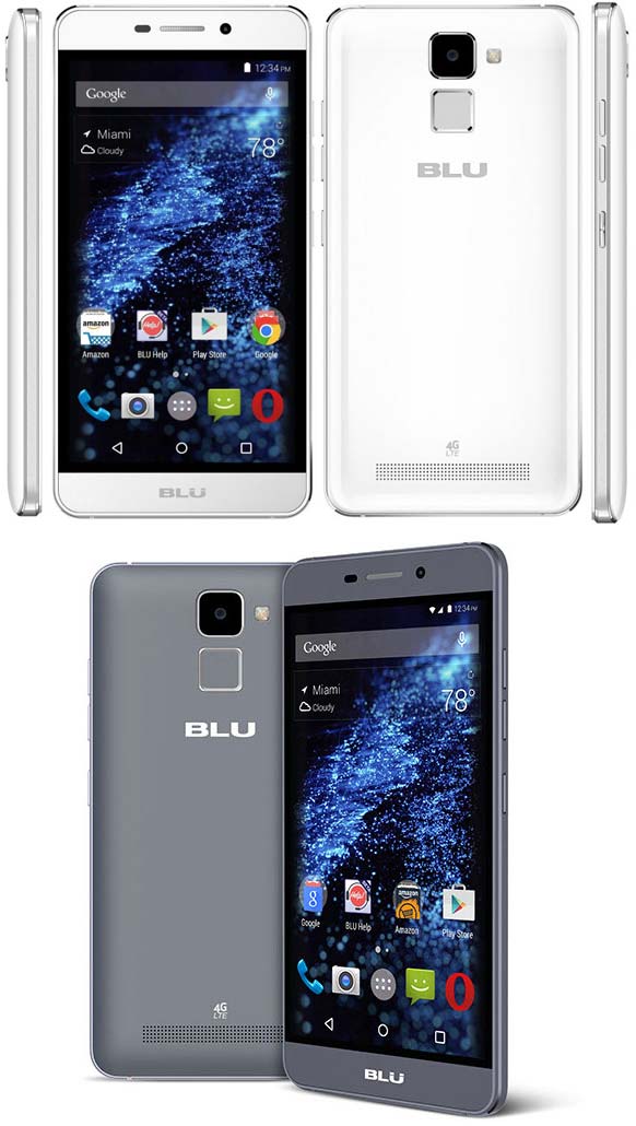 Питается смартфон от батареи на 2300 мАч, имеет два слота для SIM карт, сканер отпечатков пальцев, 13МП тыловую камеру с LED вспышкой и 5МП фронтальную. Творение BLU Products функционирует в сетях 4G LTE / 3G HSPA+, дружит с 802.11 b/g/n WiFi, Bluetooth 4.0 и GPS, будет доступно в белом и чёрном цвете.