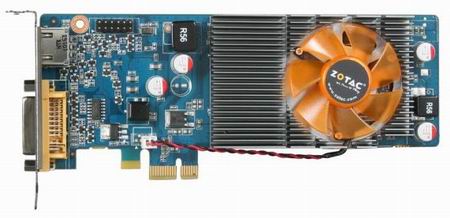 Зотак показывает видеокарту ION-GPU-A-E, ориентированную на рынок HTPC (ПК для домашнего кинотеатра) - низкопрофильную (малой высоты и габаритов в общем) и маломощную (в плане производительности в 3Д играх от неё чудес ждать не стоит).