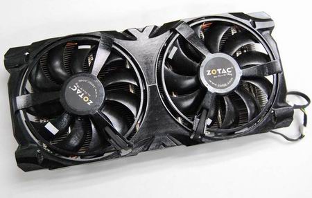 Чем нам грозит новая GTX580 в исполнении Zotac, помимо проблем с совместимостью (у GTX460 той, толстой, были трудности с размещением в узких корпусах)? Обещают устроить 16-фазовое питание и танталовые конденсаторы, всё это должно помочь в разгоне, хотя по тому, как выступают подобным образом модифицированные карточки, я бы не сказал, что они хоть сколько-нибудь лучше гонятся референсных образцов, исключения есть, но их немного. Система питания карты не изменена, т.е. коннекторы те же самые - 6+8 штырьковые. Система охлаждения - какой-то невиданный кулер от Zotac с двумя 120мм вентиляторами. По сути, он похож на то, что мы уже видели у этого производителя (или одного из китайских брендов), но там использовались 92мм вентиляторы, но смысла это не меняет. Надеюсь, что этот кулер тихий и производительный. Из видеовыходов новичком стал только DisplayPort, остальное всё тоже самое - два DVI и HDMI. Частоты карты, как и многие другие подробности, не озвучены.