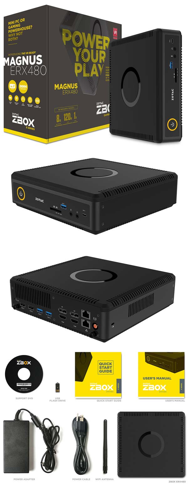 Игровой новинку делает видеокарта Radeon RX 480 с 4ГБ памяти GDDR5. Внутрь продукта Zotac поместится один 2.5" накопитель и один M.2 SSD. В наличии два видеовыхода HDMI 2.0, два DisplayPort 1.3, картридер 3-в-1, два USB 3.0, два USB 2.0, один USB 3.1 Type-A и один Type-C.