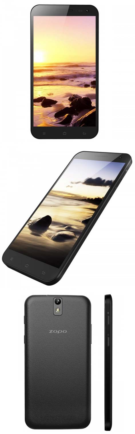 Смартфон (или планшетофон?) от компании с забавным названием ZOPO называется ZP998, этот агрегат работает в сетях GSM (850/900/1800/1900МГц) и WCDMA (900/1900/2100МГц), поддерживает EDGE и GPRS, может работать с двумя SIM картами одновременно, управляется Android 4.2.