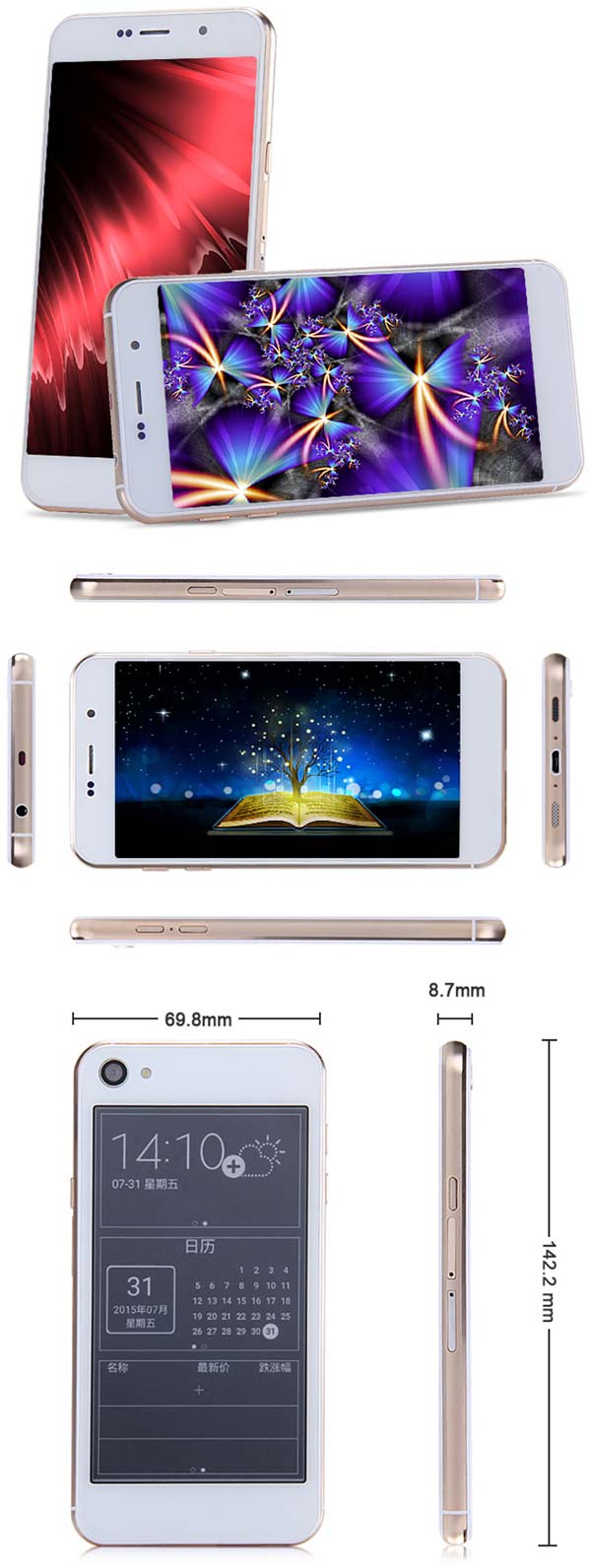 Аппарат Oukitel U6 являлся бы вполне обычным смартфоном с 5" 720p IPS экраном, вот только на обратной стороне от сенсорного дисплея находится экран на базе E-Ink (электронных чернил), с которого предлагается с комфортом читать книги при минимальных затратах электроэнергии.