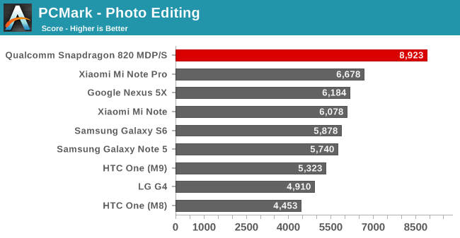 Объясняется, что инженерный образец новой SoC находится внутри предоставленного Qualcomm устройства, обладавшего 6.2" экраном с разрешение 2560x1440. Некоторые результаты низки, т.к. соответствующий софт ещё не был оптимизирован под процессорные ядра Kryo, используемые в Snapdragon 820. Тем не менее, потенциал системы-на-чипе/кристалле виден невооружённым глазом.