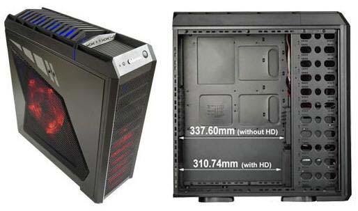Новинка от Enermax поддерживает материнские платы форм-факторов E-ATX, ATX и MicroATX, что наверняка расширит круг потенциальных покупателей. На задней стенке шасси проделано четыре отверстия под шланги СВО/СЖО. В корпусе предустановлено три вентилятора - один 250мм на боковой стенке и два 120мм "крутилятора" (Vegas) - спереди, трио оснащено подсветкой (синей или красной, видимо можно выбрать более подходящий вариант). Скорость вращения 250мм вентилятора - от 600 до 900 оборотов в минуту, а пары "Вегасов" - 1000 оборотов в минуту.
