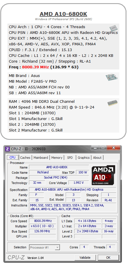 Скриншоты, являющиеся подтверждением рекорда, установленного оверклокером The Stilt на APU A10-6800K