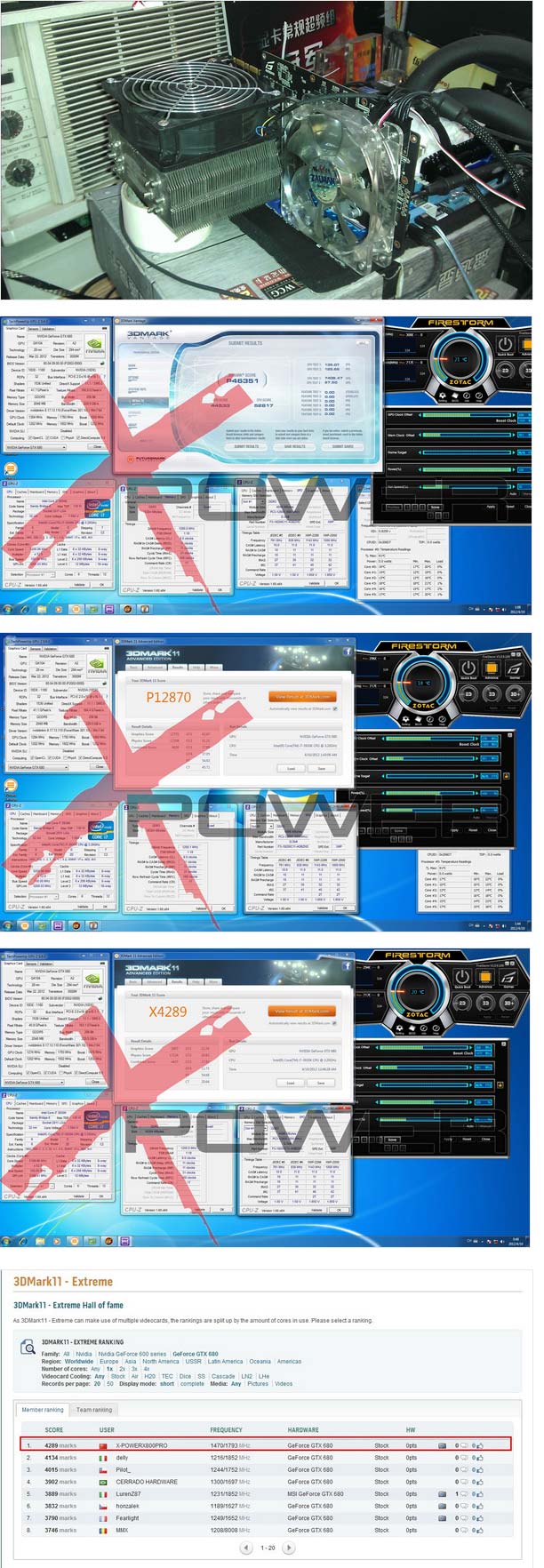 Китайский ресурс EXPreview сообщил, что китайский оверклокер x800pro, с помощью видеокарты GeForce GTX 680 Extreme Edition от китайской компании Zotac показал очень неплохие результаты в 3DMark 11 на пресете Extreme. Но уже не в Китае, а на международной арене мастеров оверклокинга.