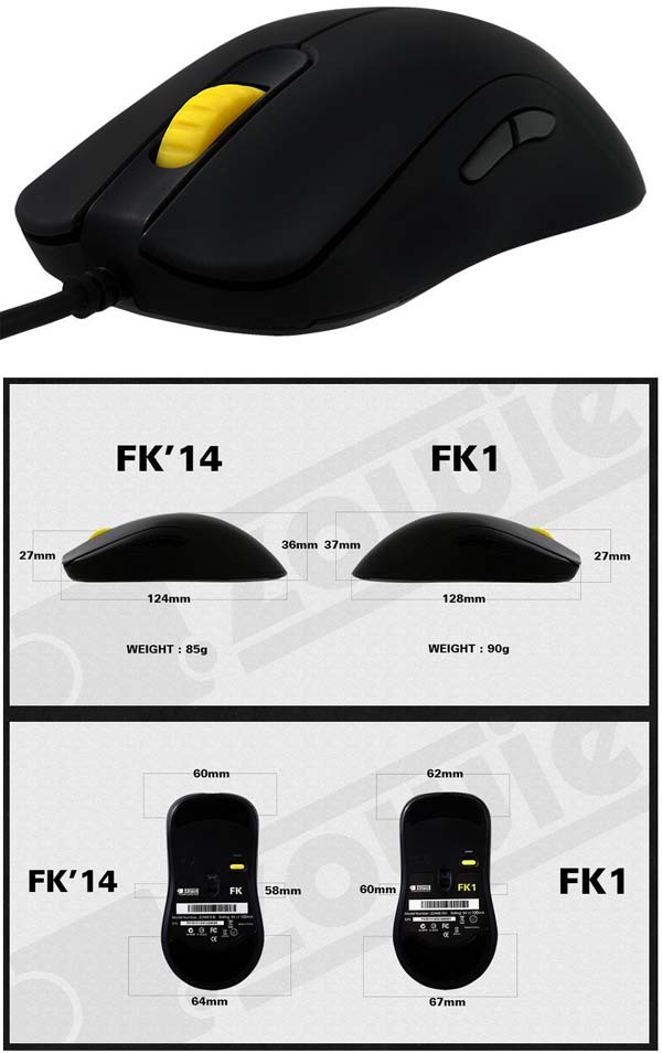 Изделие получило имя FK1, в основе аппарата лежит сенсор Avago 3310, разрешение которого можно регулировать, доступны следующие варианты: 400, 800, 1600 и 3200 точек на дюйм (DPI). Частота опроса сенсора также регулируется - 125, 500 и 1000Гц, такие вот варианты доступны.