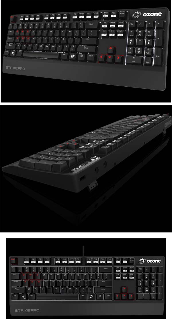 Изделие получило название Strike Pro, это оружие уничтожения виртуальных соперников построено на механических переключателях, а поэтому прослужит владельцу долго. О своём продукте Ozone говорит, что он "совмещает чувствительность, точность, контроль и скорость". Клавиши изделия имеют LED подсветку, в каждой из них используются переключатели Cherry MX (на выбор пользователя: Red, Blue, Brown и Black).