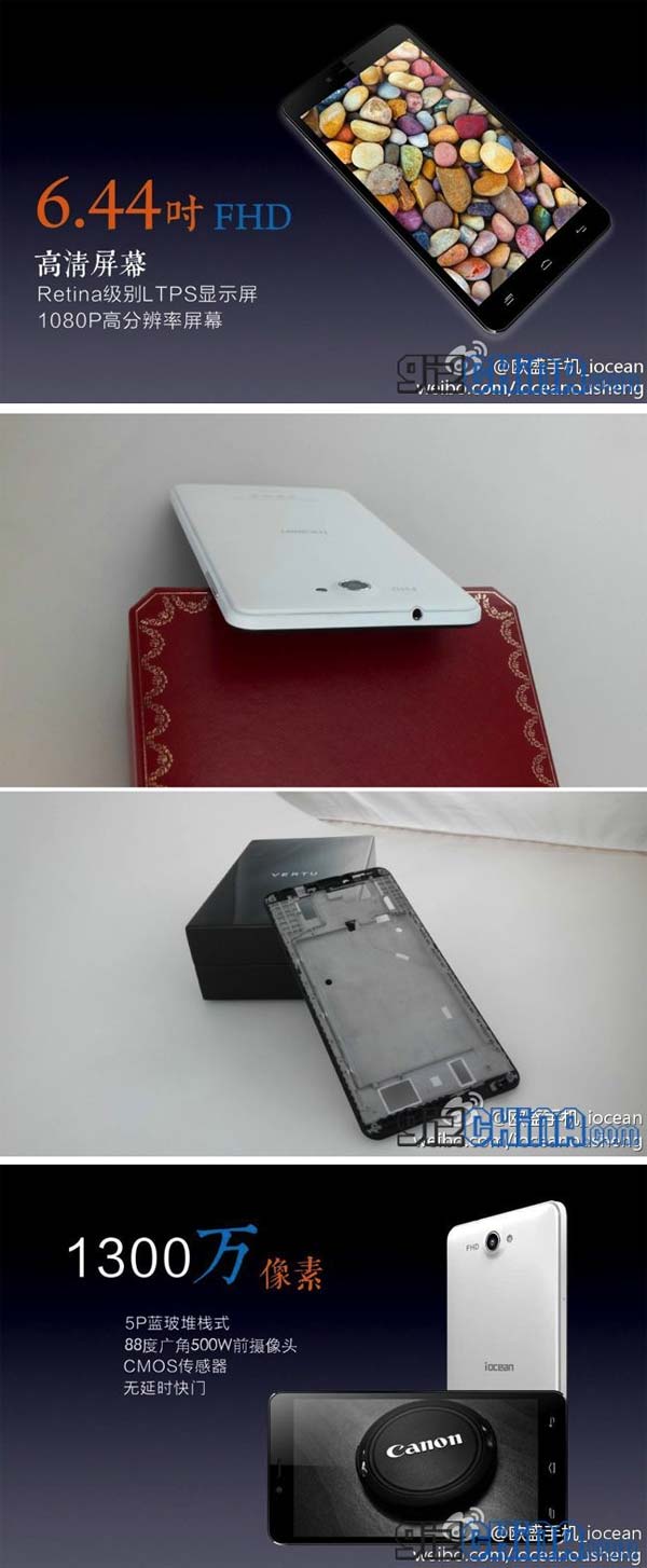Аппарат имеет 2ГБ оперативной памяти и неизвестно сколько флеш памяти под ОС Android 4.x и файлы владельца. Изделие iOcean может похвастаться наличием 13МП камеры с сапфировым стеклом и 5МП фронтальной камеры с широкоугольным 88° объективом.