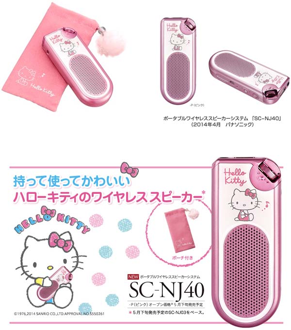 Посвящённый данной дате девайс называется SC-NJ40, дизайн аппарата выполнен в стиле Hello Kitty и внешне спутать колонку с аналогами точно не получится. Изделие общается с источником звука посредством Bluetooth 3.0 соединения, работает от встроенной литий-ионной батареи на 2200 мАч, время функционирования от которой равно 18.5 часам, при времени на зарядку в районе 6 часов.