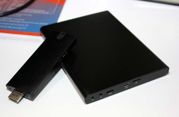 Поддержка 802.11b/g/n WiFi имеется, ровно как и Bluetooth 4.0. Особенностью аппарата стало наличие аккумуляторной батареи на 7000 мАч, от которой агрегат работает в игровом режиме до 7 часов и до 13 часов в режиме просмотра видео. Новинка имеет полностью пассивное охлаждение, в комплекте с ней поставляется пульт Д/У с клавиатурой. Управляется изделие Windows.