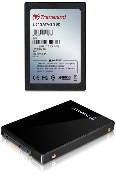 Вторая новинка именуется SSD630, она предназначена для домашнего применения. Это также 2.5" SATA 3Гб/с твердотельный накопитель, основанный непонятно на каком контроллере. Ёмкость изделия - 96ГБ (хотя будут выпущены варианты с количеством свободного места от 16 до 256ГБ), в продукте Transcend используется DRAM кеш, скорость чтения может достигать 225МБ/с, а записи - 120МБ/с. Аппарат поддерживает выравнивание износа, TRIM, NCQ, ECC и S.M.A.R.T.