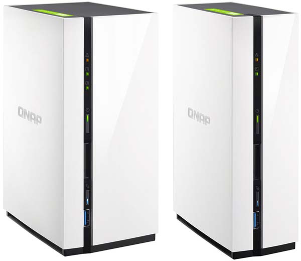 Хитроумные устройства TS-128 и TS-228 основаны на 1.10ГГц двухъядерном процессоре ARM v7, обладают 1 гигабайтом оперативной памяти, управляются QTS 4.2, позволяют работать с данными на скорости до 100МБ/с, разница между девайсами в том, что внутрь первой новинки помещается один 3.5" SATA накопитель, а внутрь его братца их влезает два.