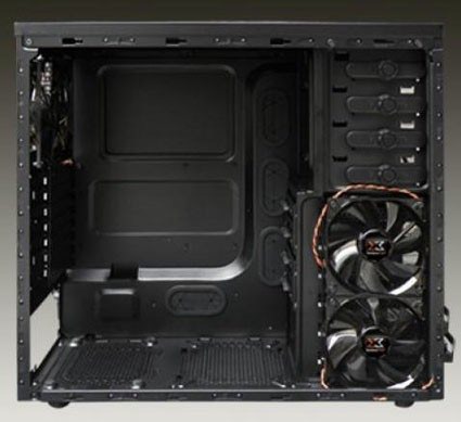 Габариты новинки - 206х543х500мм, вес не указан. При первом взгляде на корпус, сразу видны четыре отсека под 5.25 дюймовые устройства, при втором - уютно устроившийся в верхней части шасси, контроллер вентиляторов, один USB 3.0, пара USB 2.0, один eSATA и аудио порты. Внутри корпуса располагаются шесть корзин для жёстких дисков с анти-вибрационными креплениями и три вентилятора - один на задней станке на выдув (с LED-подсветкой), а два - напротив корзин для HDD. Установка PCI карт и оптических приводов производится без инструментов (tools-free режим).